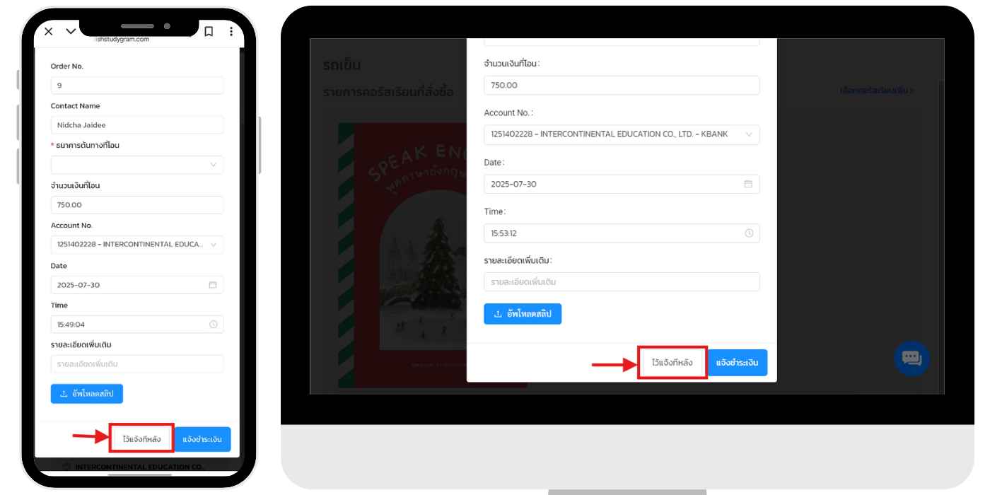 (ข้อควรทราบเมื่อถึงหน้านี้แล้ว ไม่ได้กด แจ้งชำระเงิน ทันที จะกลายเป็นเคสแจ้งทีหลังให้ดูตามขั้นตอนนี้เป็นต้นไป)